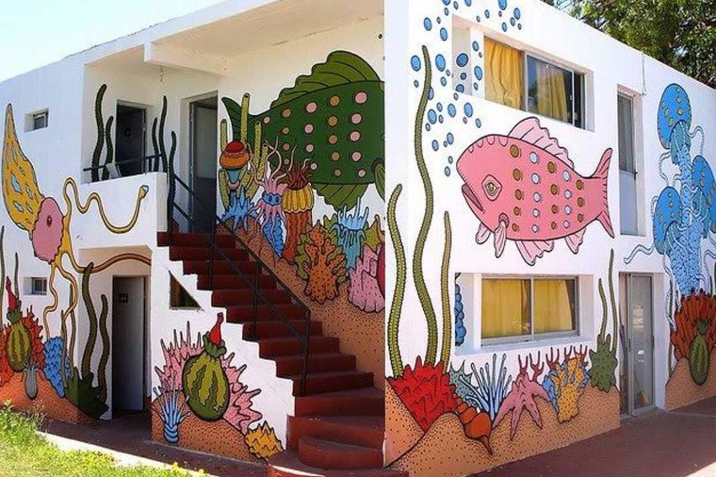 Uruguayan street artist and muralist Nicolás Sanchez aka Alfalfa was commissioned to bring some pizazz to the “El Viajero Hostel” near Punta del Este, Uruguay